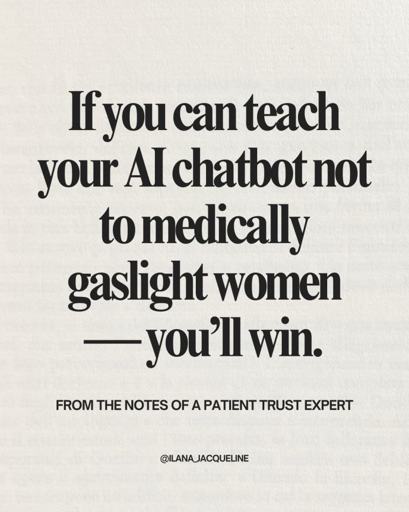 If you can teach your AI Chatbot not to medically gaslight women — you’ll win.